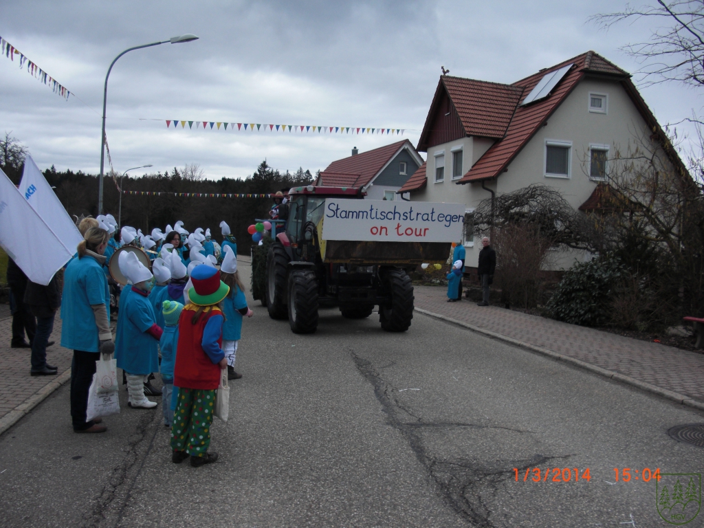 Mit der Teilnahme am Kinderfasching der Stammtischstrategen begann das Jahr für den Heimat- und Geschichtsverein als „Dennacher Zapfa“. Klein aber fein war der Kinderfaschingsumzug, der sich mit 21 Gruppen und 380 Teilnehmern farbenfroh durch die Narrenhochburg Dennach seinen Weg bahnte. Die zahlreichen Besucher die die Umzugsstrecke säumten, mussten allerdings etwas länger auf den närrischen Zug warten, Grund war ein Türdeffekt beim Südwestbus, der vor dem Umzug noch die Strecke passieren musste. Die längere Wartezeit wirkte sich aber keineswegs stimmungsmindernd bei den Besuchern aus. So gab es nach dem Faschingsumzug in der Schwabentorhalle einen riesen Partyspaß, wo der Flutlichtchor und die Musikvereine für Stimmung sorgten. Im Neuenbürger Stadtbote beschrieb man die „Dennacher Zapfa“ sogar als Umzugsurgesteine.